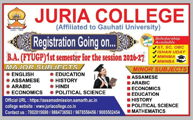 It was prior to the year 1989, when the greater Juria and adjacent villages were beleaguered with the socially and economically backward people and when it was quite unimaginable to send the children of such families for higher education to far away town, in that very hour, two makeshift colleges were established within a distance of about four kilometers with the efforts of few sensitive minded educationists and social workers of the area.